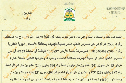 التفاصيل | جنوب المنسوب (253/4) 356/ب | المساحة454م شارع12 | السوم463,000.00 23/04/2026 |