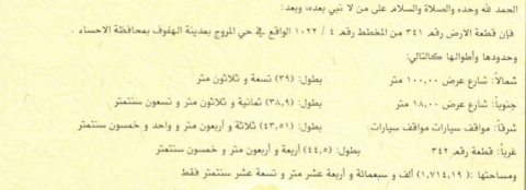 التفاصيل | المروج (1022/4) العمر4 | المساحة550م شارع15*30 | 14/03/2026 |