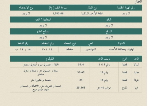 التفاصيل | المهندسين (701/4) 2/أ | المساحة5,258م شارع20*20*12*10 | 01/10/2025 |