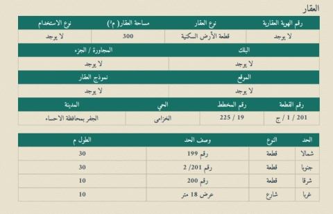 التفاصيل | الخزامى 4/198/أ | المساحة300م شارع8*15 | المتر1,200.00 02/06/2025 |