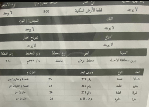 التفاصيل | حرض 331/ب | المساحة400م شارع15 شمال | على السوم 18/10/2025 |