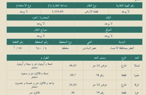 التفاصيل | الضاحية الحي السادس (640/4) 427/أ | المساحة1,238م شارع50*30 | السعر على السوم 10/08/2025 |