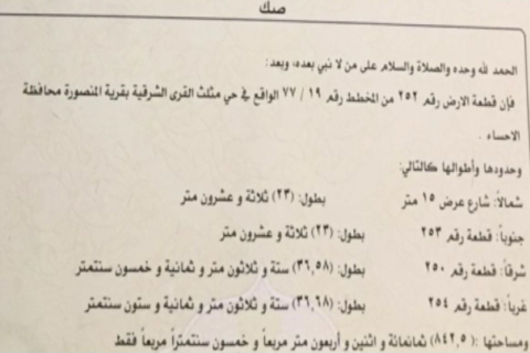 رقم الأرض 252 المساحة 842.5 م الحدود والأطوال: 36.5*23 شارع 15 شمال المتر 1,400 ريال رخصة فال 1200009227