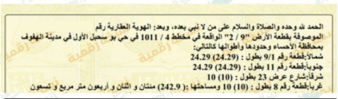 رقم الأرض 2/9 حرف ب المساحة 242.9 م الحدود والأطوال: 24*10 شارع 23 شرق السعر 450,000 ريال رخصة فال 1200009227