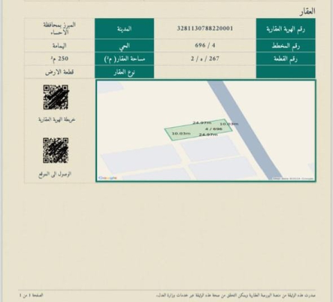 التفاصيل | اليمامه 1/267/هـ | المساحة250م شارع15 شرق | السعر400,000.00 15/04/2026 |