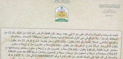 التفاصيل | الرابيه بالعيون 271 | المساحة641م شارع15*15 | السعر545,000.00 26/01/2026 |