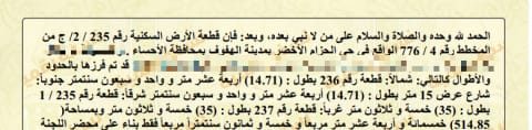 التفاصيل | شرق شرق الحديقة 310/ج | المساحة910م شارع15 | المتر1,100.00 04/01/2026 |