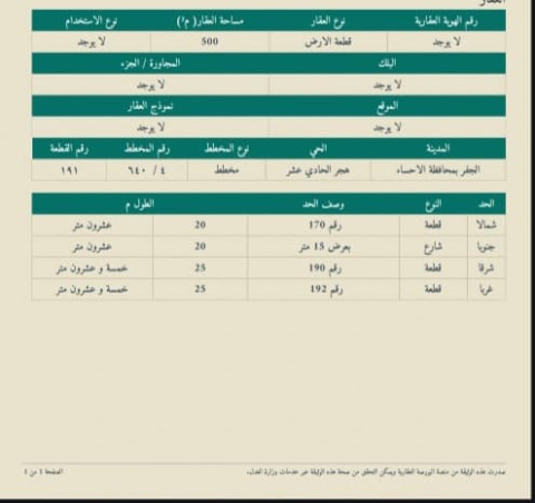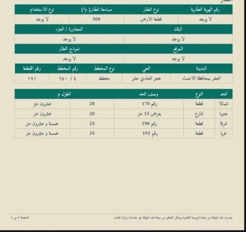 التفاصيل | مخطط التعاون ( الاسكان ) 640/4 82/و | المساحة495م شارع15*15 | السعر400,000.00 30/11/2025 |