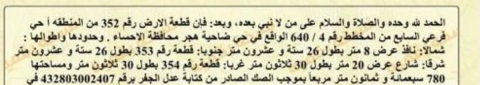 التفاصيل | الضاحية الحي السابع (640/4) 372/ج | المساحة784م شارع15 | السعر360,000.00 13/04/2026 |