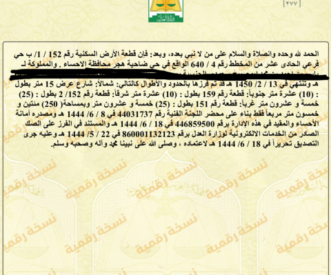 التفاصيل | مخطط التعاون ( الاسكان ) 640/4 245/أ | المساحة500م شارع30*15 | السعر340,000.00 05/02/2026 |