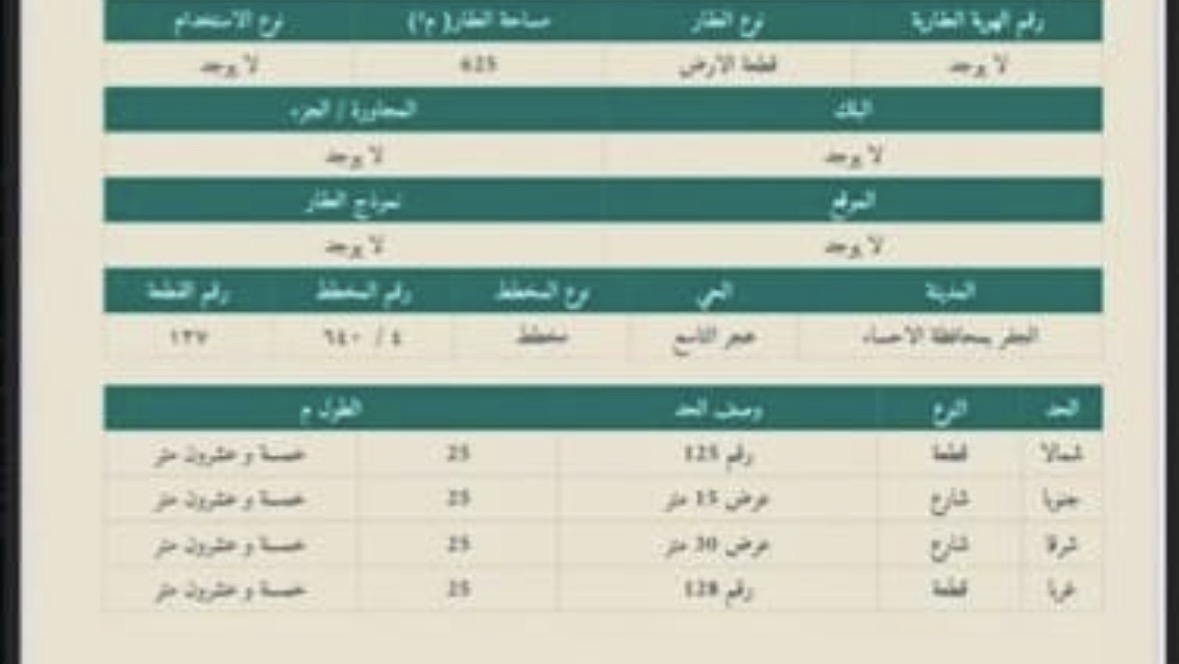 التفاصيل | الضاحية الحي التاسع 318/أ | المساحة625م شارع15 | السعر370,000.00 18/02/2026 |
