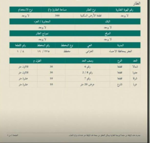 التفاصيل | الخزامى 1/201/ج | المساحة300م شارع18 | السعر330,000.00 22/10/2025 |