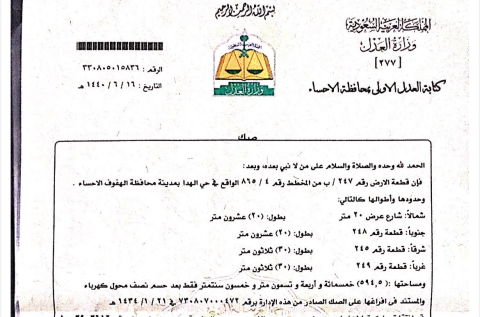 التفاصيل | الهدا 289/ب | المساحة621م شارع20 | حد المتر1,000.00 22/02/2025 |