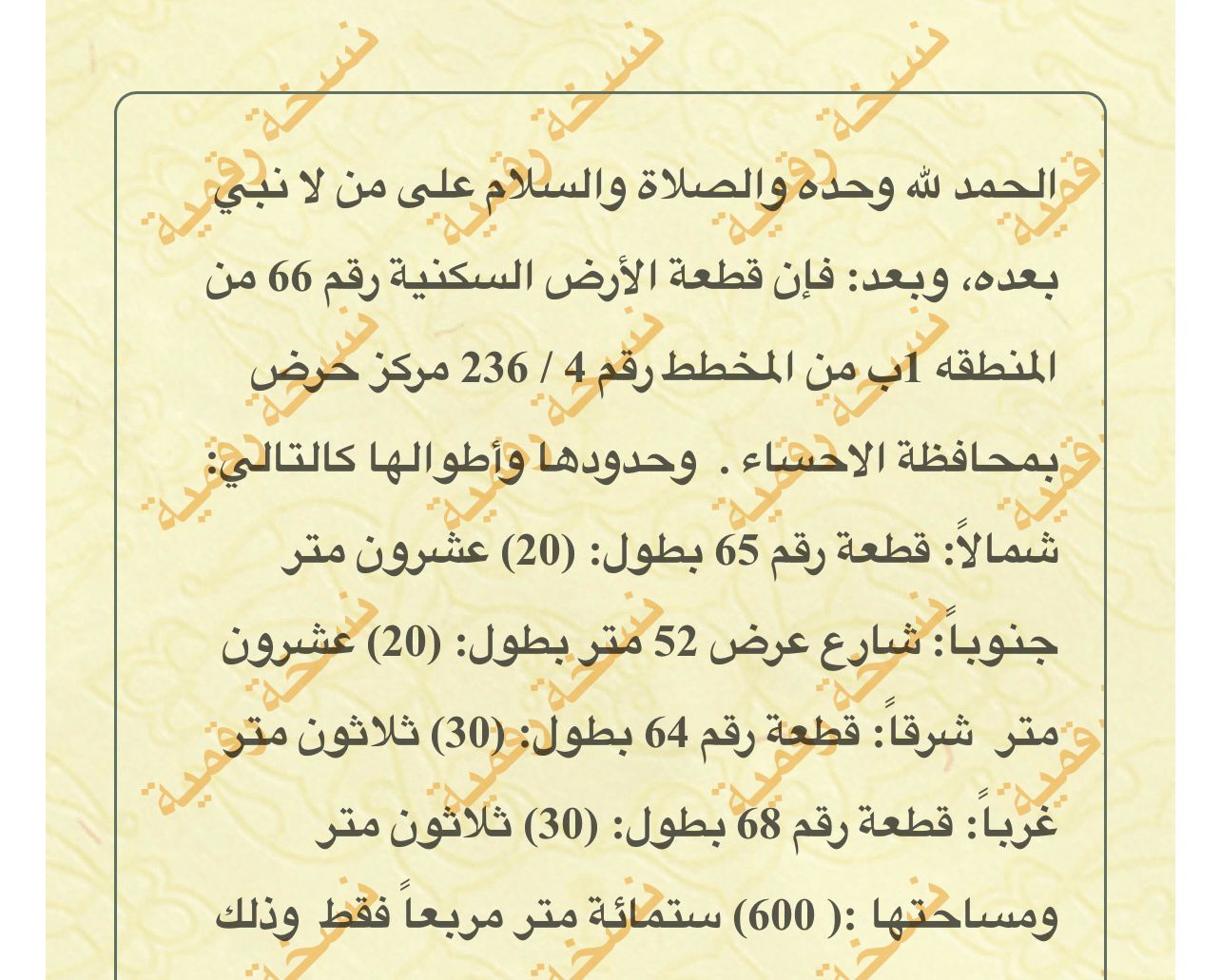 التفاصيل | حرض 331/ب | المساحة400م شارع15 شمال | على السوم 18/10/2025 |