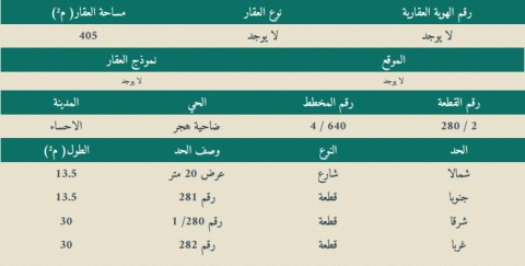 التفاصيل | الضاحية الحي الرابع (640/4) 2/279/ج | المساحة400م شارع15 شمال | السعر265,000.00 06/04/2026 |