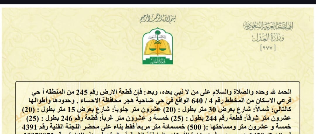 التفاصيل | مخطط التعاون ( الاسكان ) 640/4 274/ب | المساحة495م شارع15*15 | السعر330,000.00 24/02/2026 |