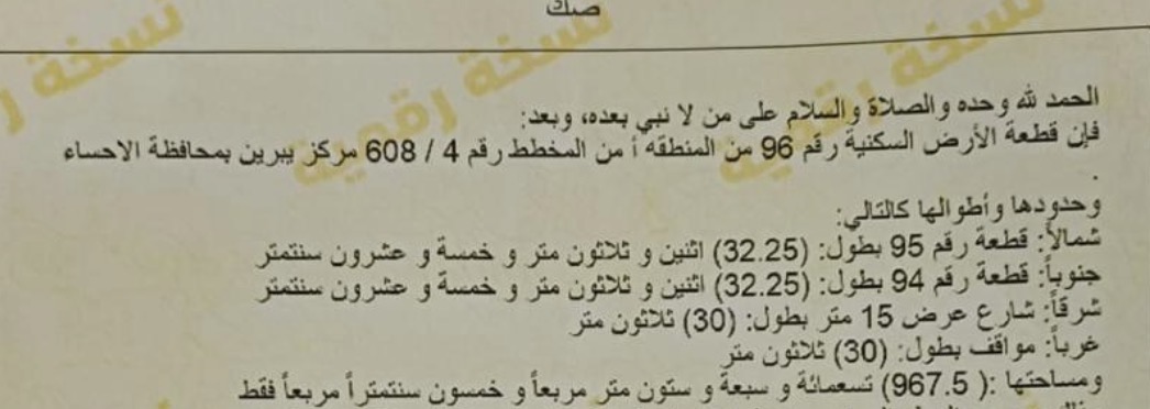 التفاصيل | يبرين 608/4 112/ب | المساحة780م شارع15*15 | السعر على السوم 08/04/2026 |