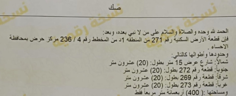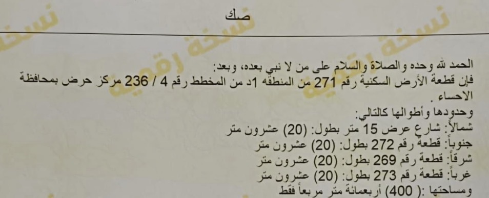 التفاصيل | حرض 331/ب | المساحة400م شارع15 شمال | على السوم 18/10/2025 |