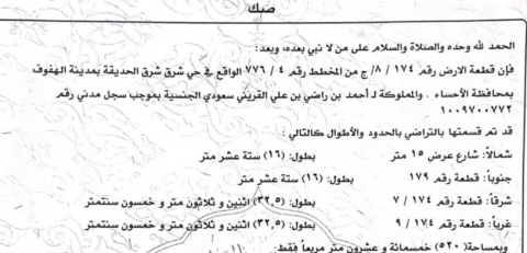 التفاصيل | شرق شرق الحديقة 310/ج | المساحة910م شارع15 | المتر1,100.00 04/01/2026 |