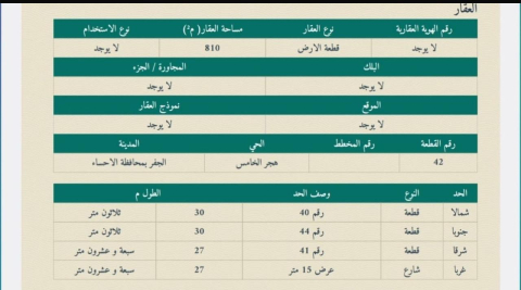 التفاصيل | الضاحية الحي الخامس (640/4) 576/ب | المساحة927م شارع15 شرق | الحد600,000.00 16/02/2026 |