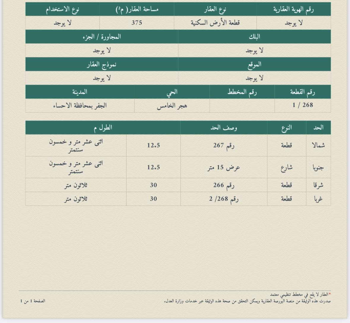 التفاصيل | الضاحية الحي الخامس (640/4) 576/ب | المساحة927م شارع15 شرق | الحد600,000.00 16/02/2026 |