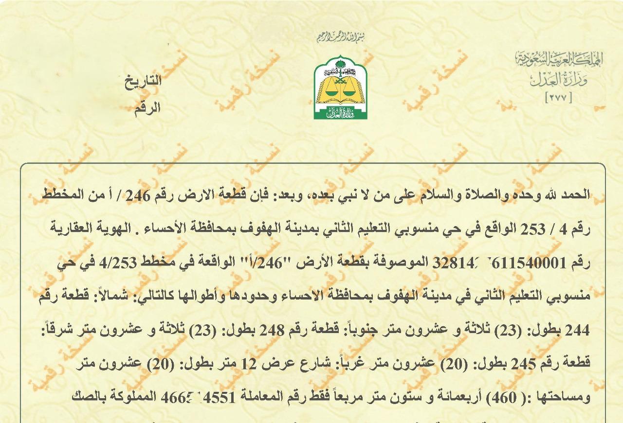 التفاصيل | جنوب المنسوب (253/4) 92/د | المساحة230م شارع15 | الحد240,000.00 18/03/2026 |