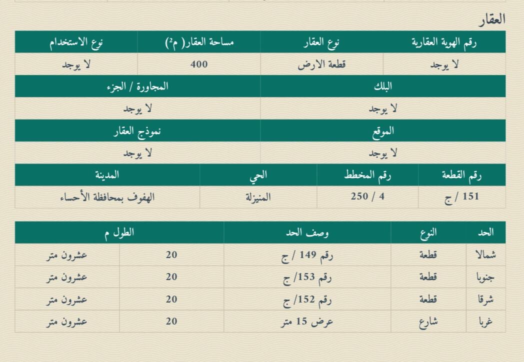 التفاصيل | المنيزلة 116/ب | المساحة628م شارع15*8 | السعر950,000.00