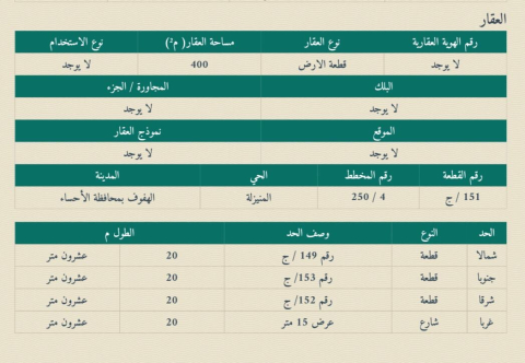 التفاصيل | المنيزلة 55 | المساحة430م شارع15 | المتر1,600.00