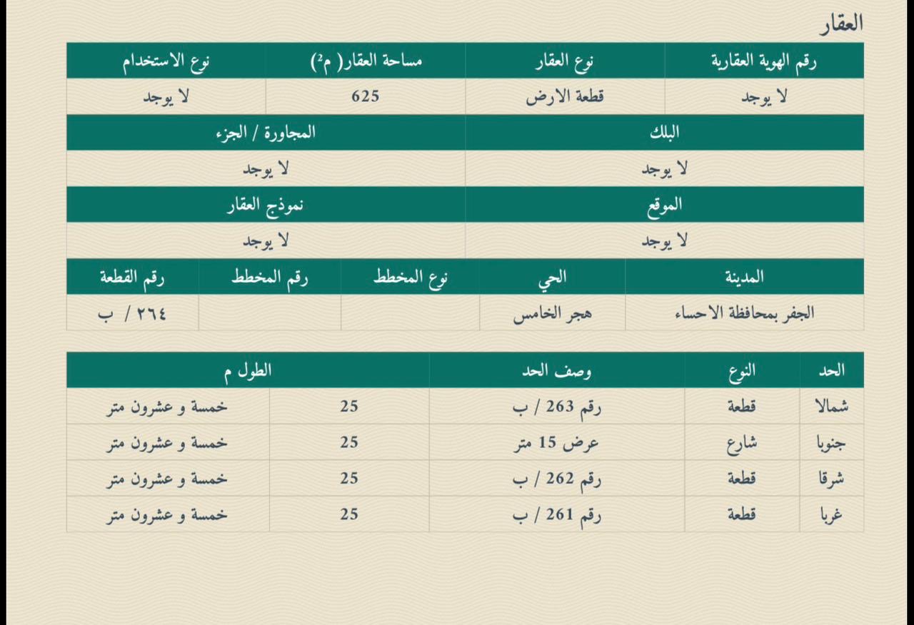 التفاصيل | الضاحية الحي الخامس (640/4) 576/ب | المساحة927م شارع15 شرق | الحد600,000.00 16/02/2026 |