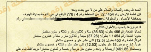 التفاصيل | شرق شرق الحديقة 1/103/أ | المساحة455م شارع15 | المتر1,000.00 14/04/2026 |