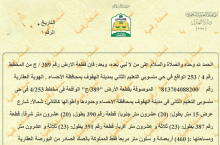 نص أرض للبيع في جنوب المنسوب (253/4) هـ رخصة فال 1200009227 اسم الحي جنوب المنسوب (253/4) Read more about نص أرض للبيع في جنوب المنسوب (253/4) هـ